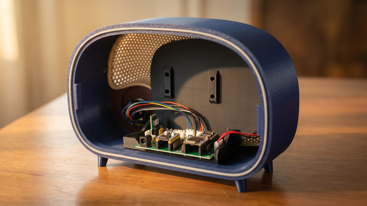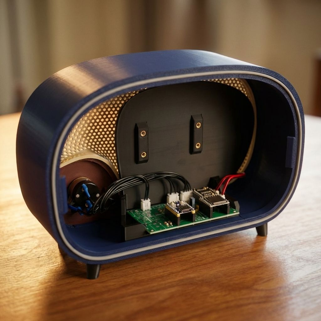 This version of the Vintage Radio uses a custom printed circuit board that replaces the hand-wired electronics used in the original build. The result is a cleaner build, fewer wiring steps, and a more repeatable assembly process.
