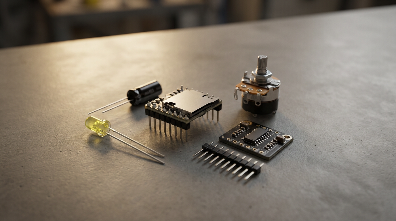 - The BOM does NOT include the the pushbutton or the speakers. Links to those are in the next section.